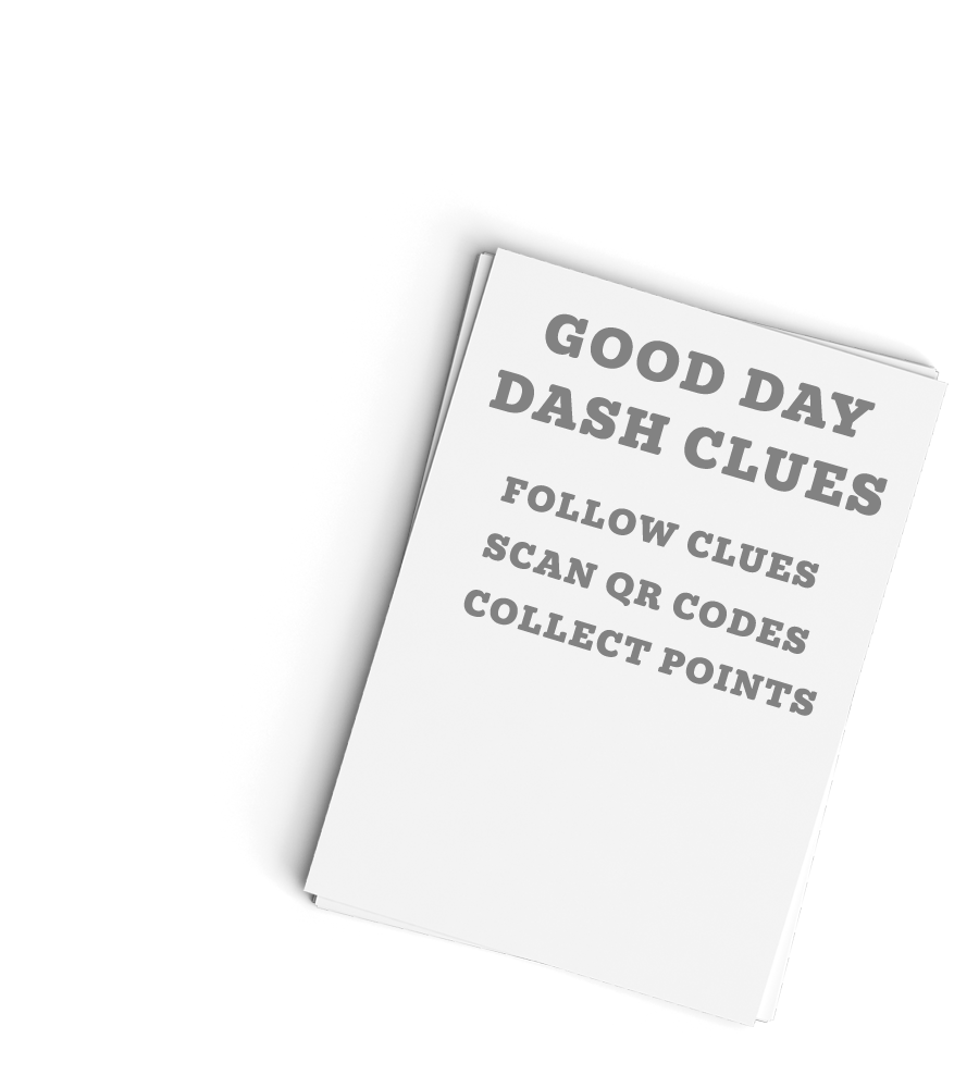 Clues lead to local businesses or landmarks. Find the location, locate the QR code, and scan it to earn points.